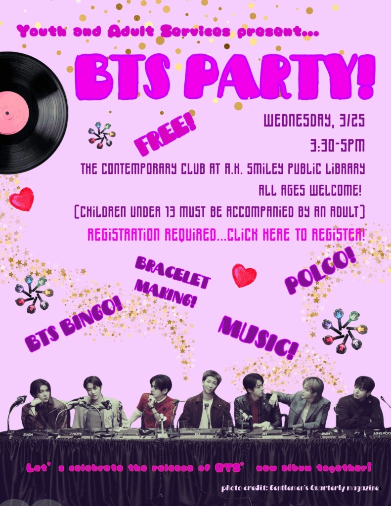 - The Teen Underground (Lower Level at A.K. Smiley Public Library)